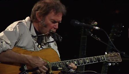 Looking at his entire career, it seems that Young is strongest either when he’s bashing out riffs amid the sonic thunder of his sometime backup group, Crazy Horse, or when he’s playing countrified acoustic music.