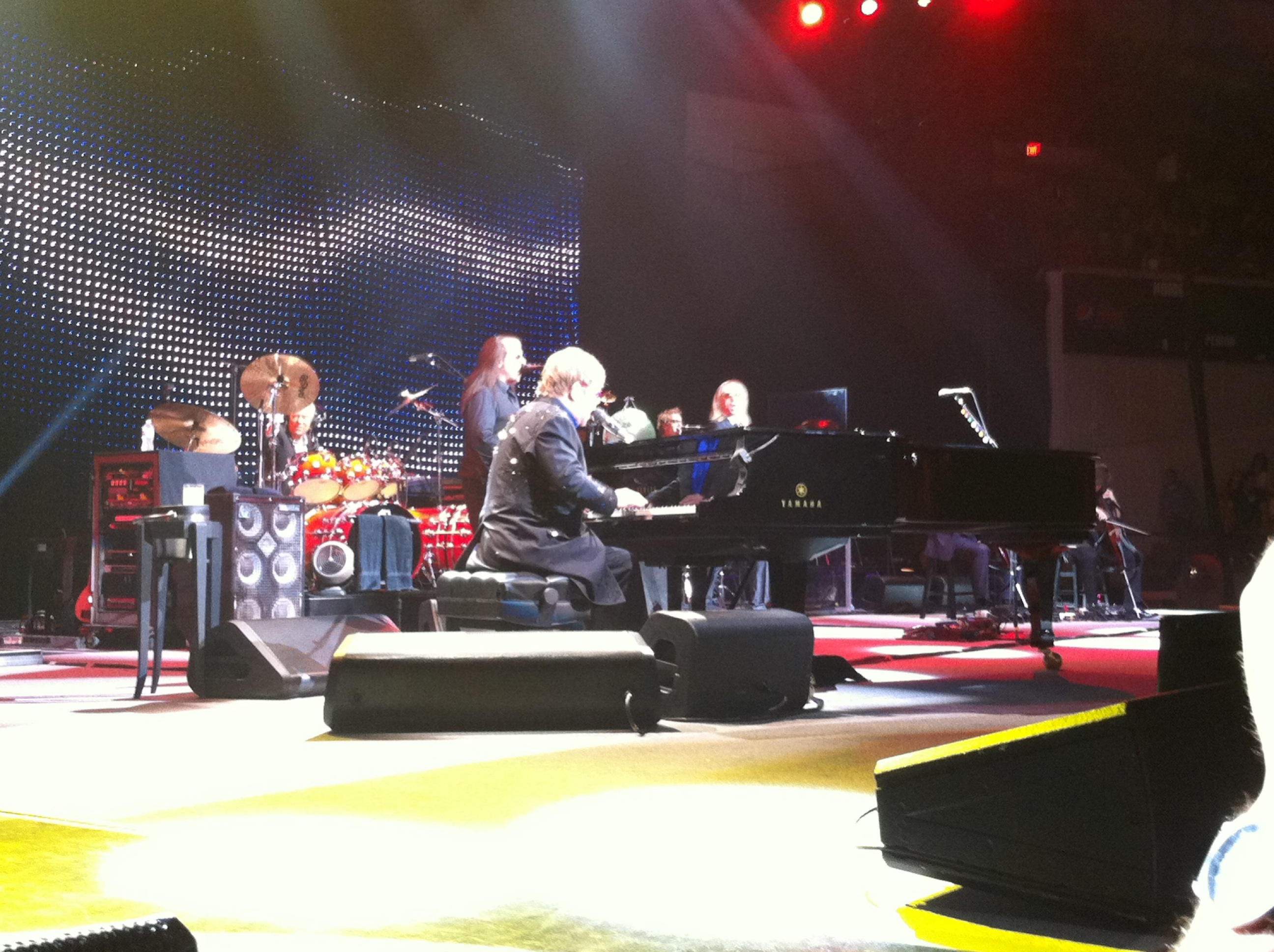 John did allow himself a few moments of personal privilege. The melancholic “I Guess That’s Why They Call It The Blues” graduated from a slow, sad ballad to a peppier, workman-like tempo. A rearrangement like this might have failed for an “American Idol” contestant, but in the hands of John and his singers, became more sweetly mournful than emotionally draining. This was also the first song that he performed that wasn’t from the ’70s, and signaled a brief interlude when John presented two tracks from “The Union,” his 2010 collaborative album with fellow pianoman Leon Russell. He told the cheering crowd that the record’s critical and commercial success helped “get me back in the public domain, which is something I really wanted to do.” The new songs blended nicely with the generous mood. “Hey Ahab” was more deeply rhythmic than the classics and featured Johnstone’s excellent ZZ Top riffing. “Gone To Shiloh” might have aspirations of becoming a historic epic about the American Civil War although John and band were content to work it into an elegant, marching setpiece.